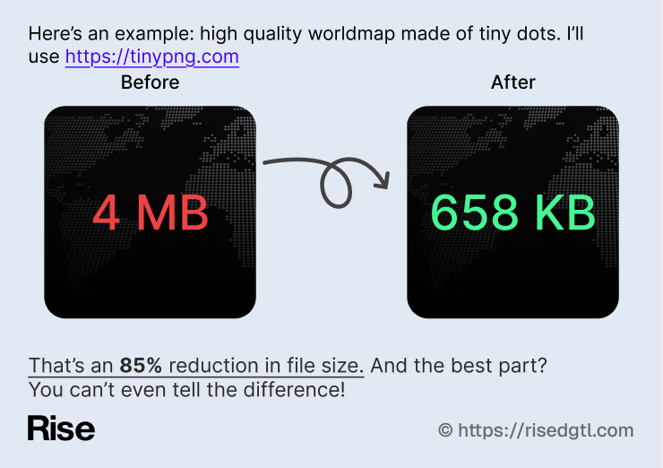 Most images look identical at 80-85% quality compared to 100%, but the file size difference is massive. Run your images through compression before uploading them.